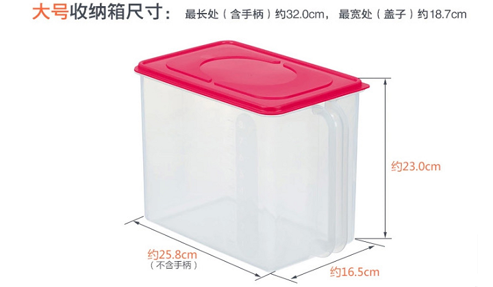 用途:用于儲藏大米、食品、干貨等,帶把手設計,使用方便,抗菌加工,抑制細菌增長,安全衛(wèi)生,體積小不占空間;帶蓋設計,可保持存放食材的衛(wèi)生;同時可以疊加放置,節(jié)約空間。容量大,也可用于廚房面粉等其它五谷雜糧等的儲放。